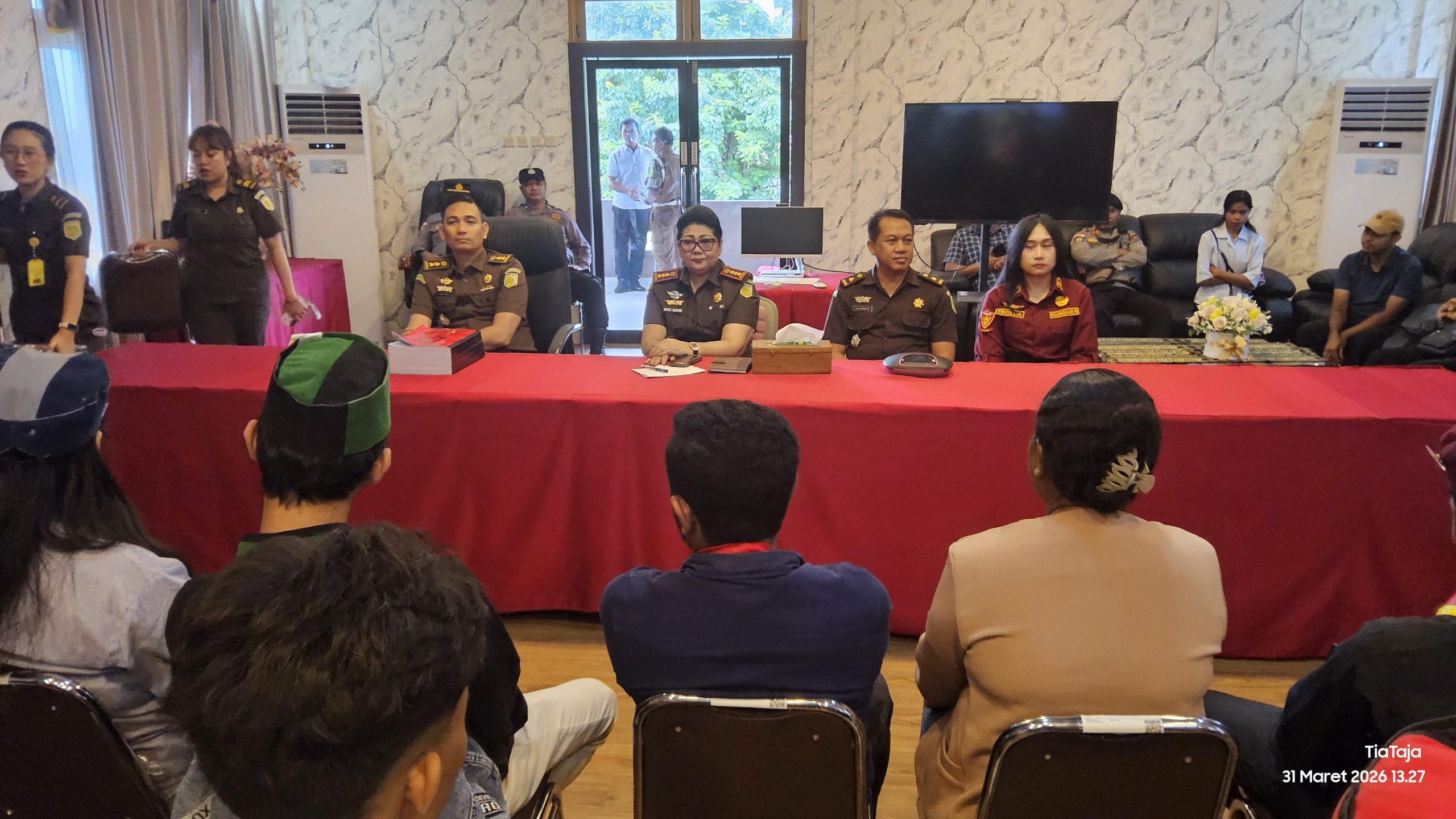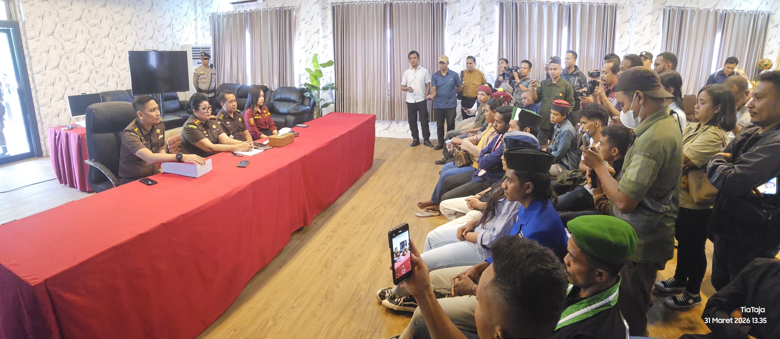 Puluhan anggota keluarga tersangka pun ikut mendatangi kantor Kejari dan melakukan audiens dengan Kajari, Sherly manutede bersama sejumlah Jaksa.