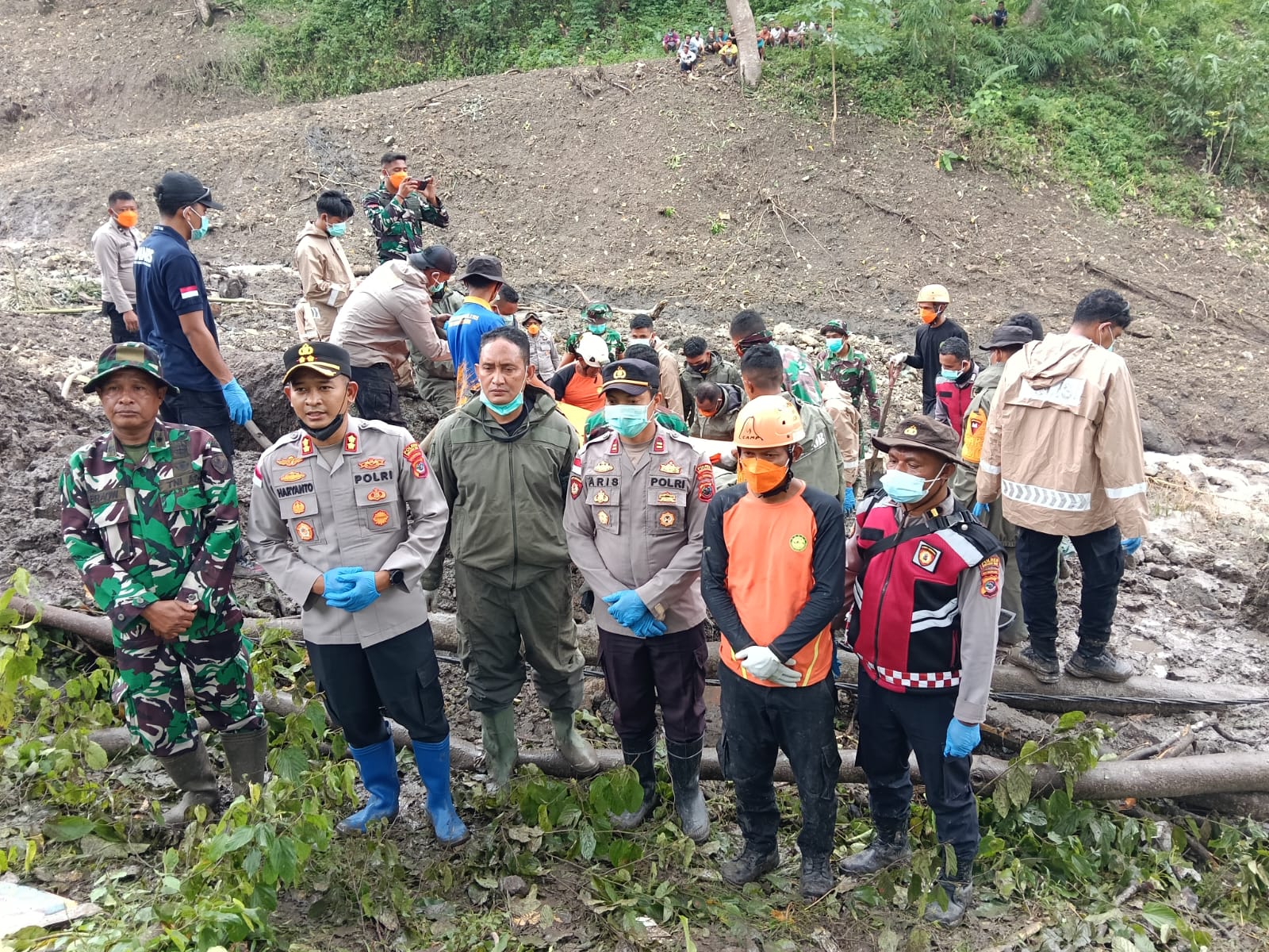 “Tim SAR Gabungan telah melaksanakan pencarian hari ke-5, dan pada hari ini sejak Pukul 06.00 Wita, Tim SAR Gabungan terus berjibaku dengan material longsoran, hingga tim berhasil menemukan korban hari ini pada pukul 10.30 Wita di koordinat 8°27’11.334”S – 120°32’58.716”E berjarak 5 meter dari rumah korban dengan kondisi meninggal dunia tertimbun tanah longsor sedalam 1-2 meter,” papar Fathur Rahman, Kepala Kantor SAR Maumere selaku SMC (SAR Mission Coordinator) kepada media.