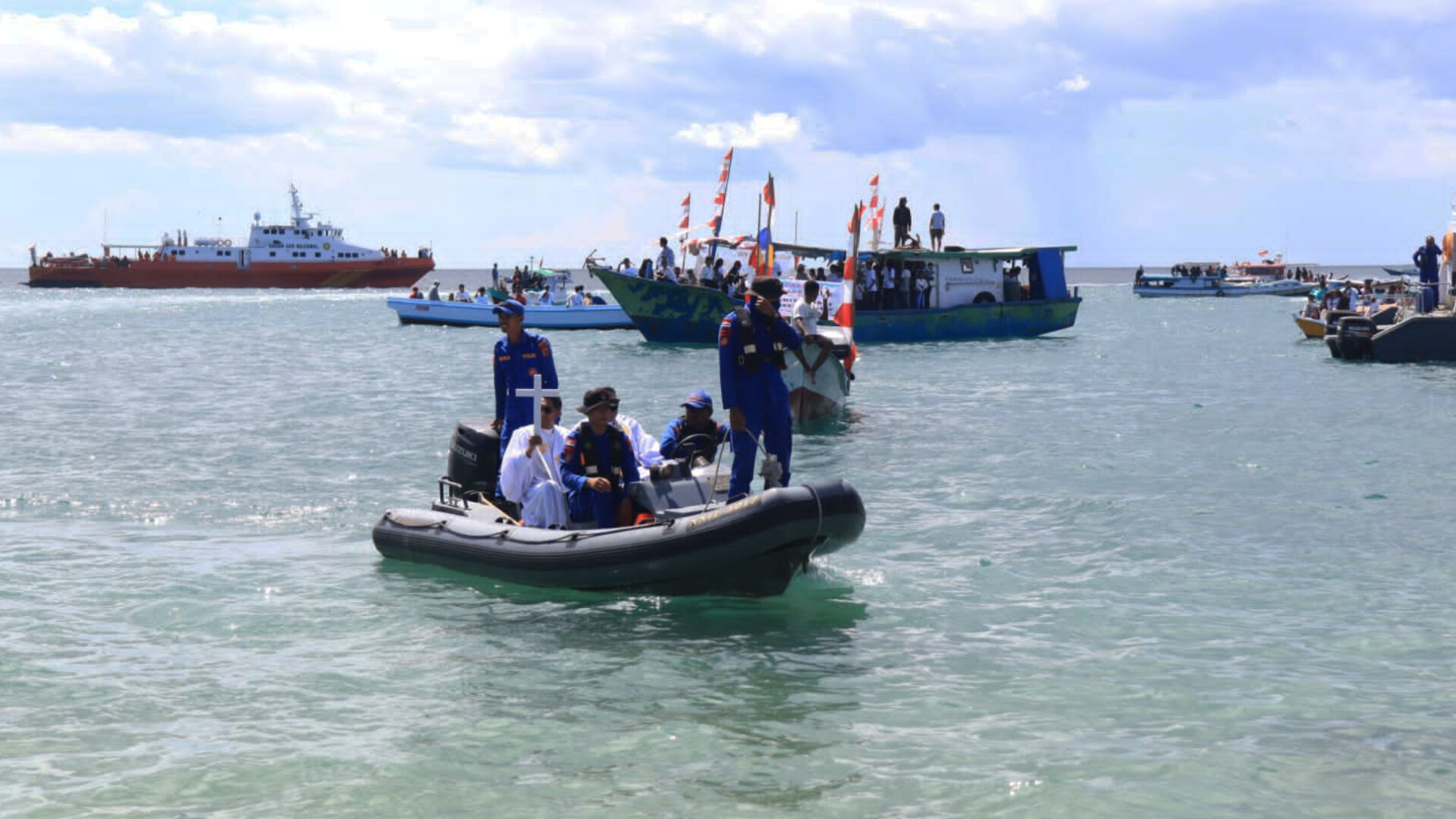 Prosesi laut dari pantai lasiana menuju LLBK sejauh bbelasan kilometer, melibatkan Komunitas Nelayan Muslim Oesapa. Mereka bahkan menghiasi perahunya dengan Salib, simbol kemenangan Kristus atas maut atau Paskah baru.