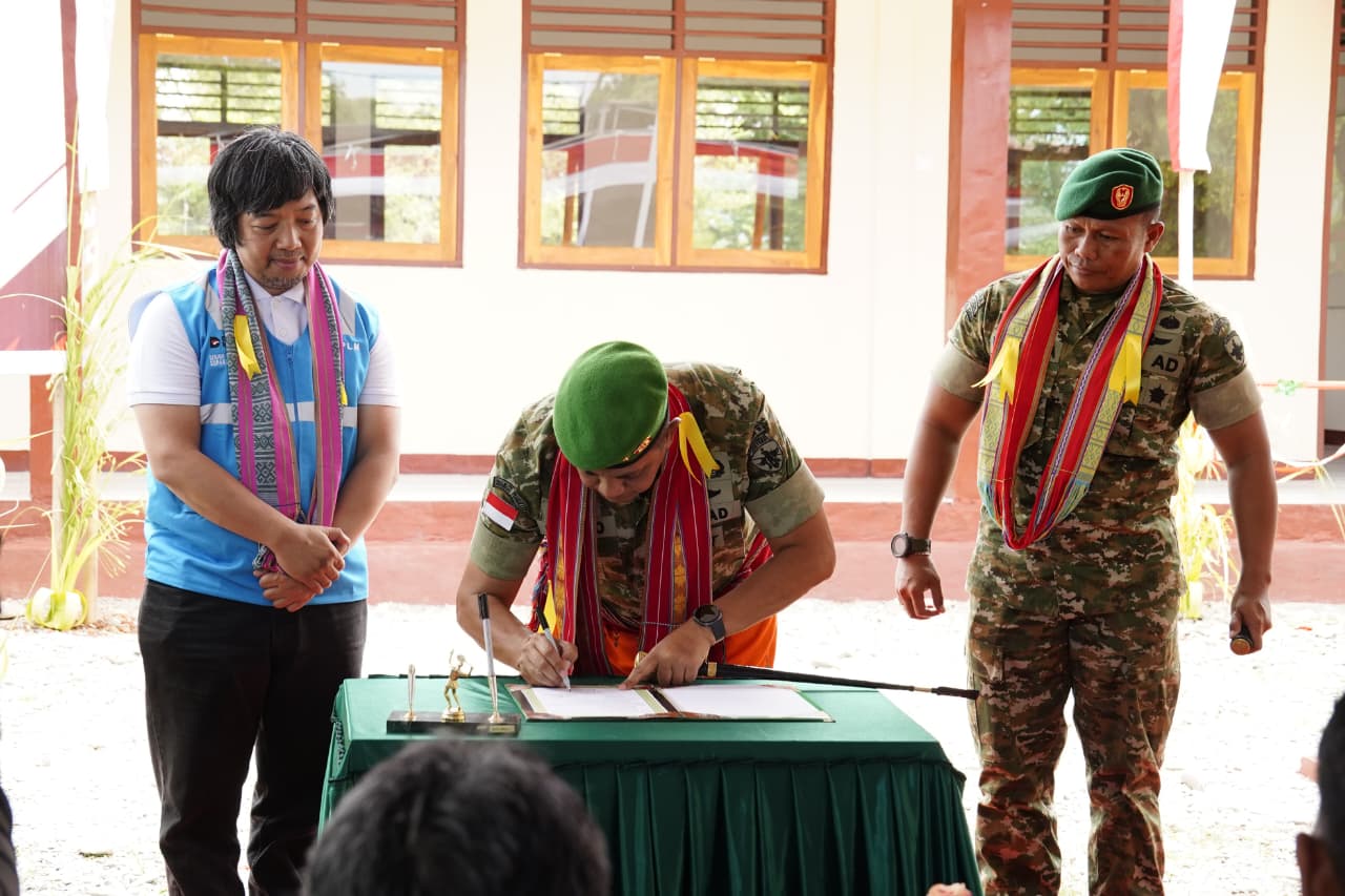 Kabar Rakyat Terkini, Oepoli_ Komandan Korem 161/Wira Sakti Brigjen TNI Hendro Cahyono meresmikan Program Kolaborasi Pembangunan SMP Negeri Oepoli, yang berlokasi di Desa Netemnanu Utara, Kecamatan Amfoang Timur, Kabupaten Kupang, Kamis (8/1/2026). Peresmian ini bukti nyata sinergi TNI Angkatan Darat, PT PLN (Persero), dan Pemerintah Daerah, dalam mendukung peningkatan kualitas pendidikan, khususnya di wilayah perbatasan Negara Kesatuan Republik Indonesia dengan Republik Demokratik Timor Leste (RI–RDTL).